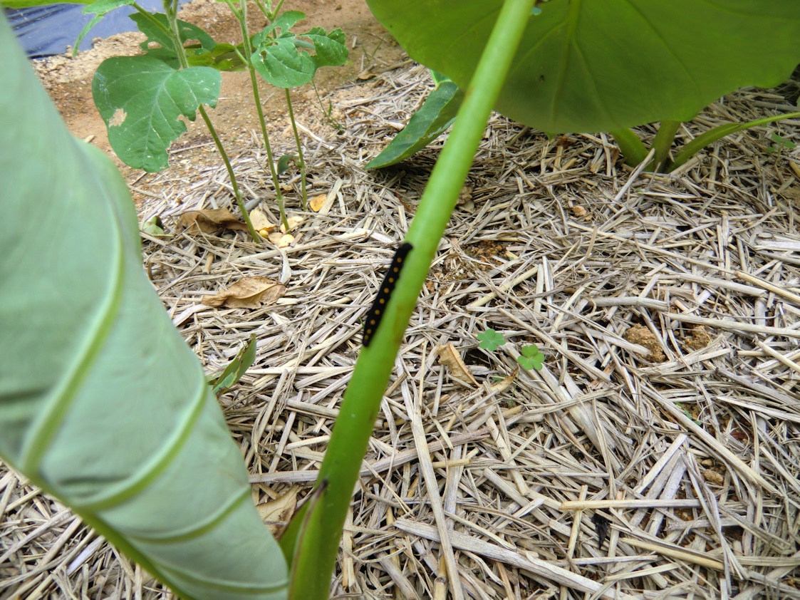 畑のサトイモには何かの幼虫が