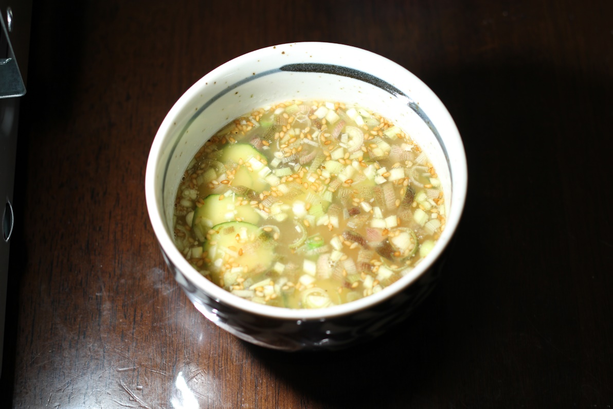 冷汁です、これを熱い飯にぶっかけて食べます。