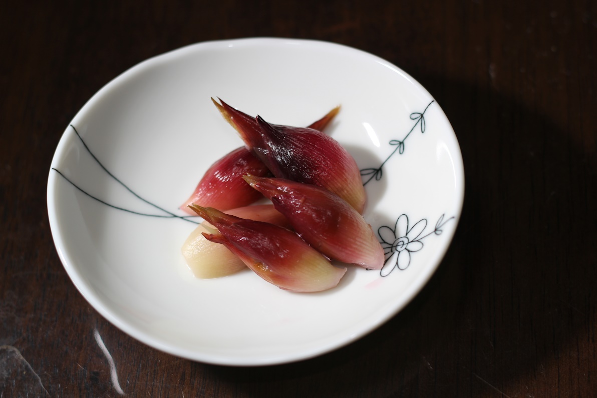 今日の収穫はミョウガが沢山採れたので、例年通り甘酢漬けを作りました。
