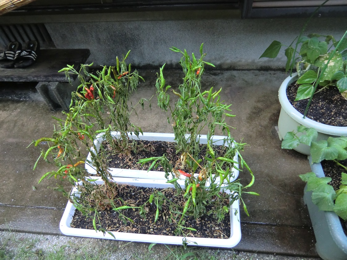 は鷹の爪ですが熟れて赤くなったのではなく暑さの為に赤くなっているようです。