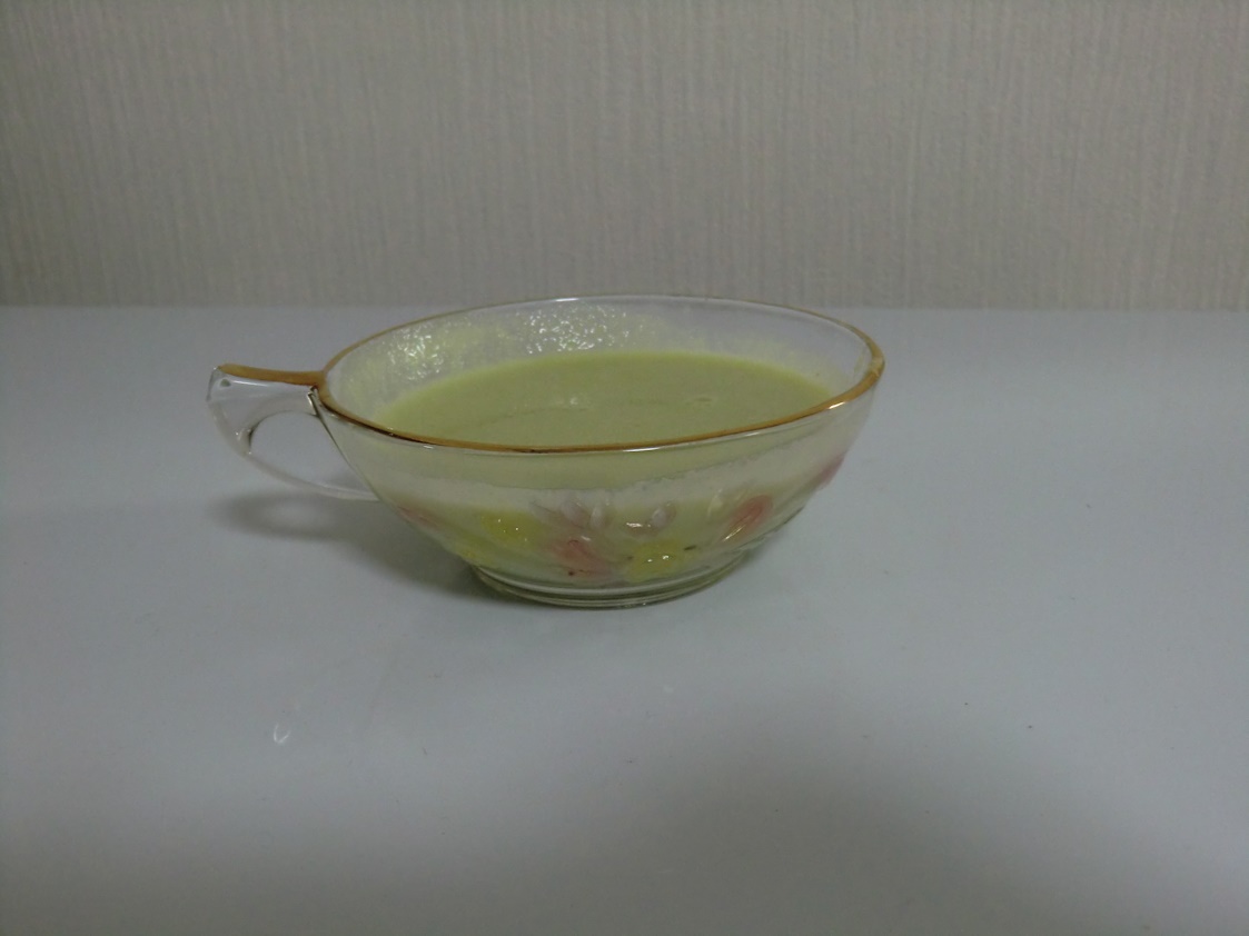今晩の一品は自家菜園で撮れた枝豆の冷製スープです。