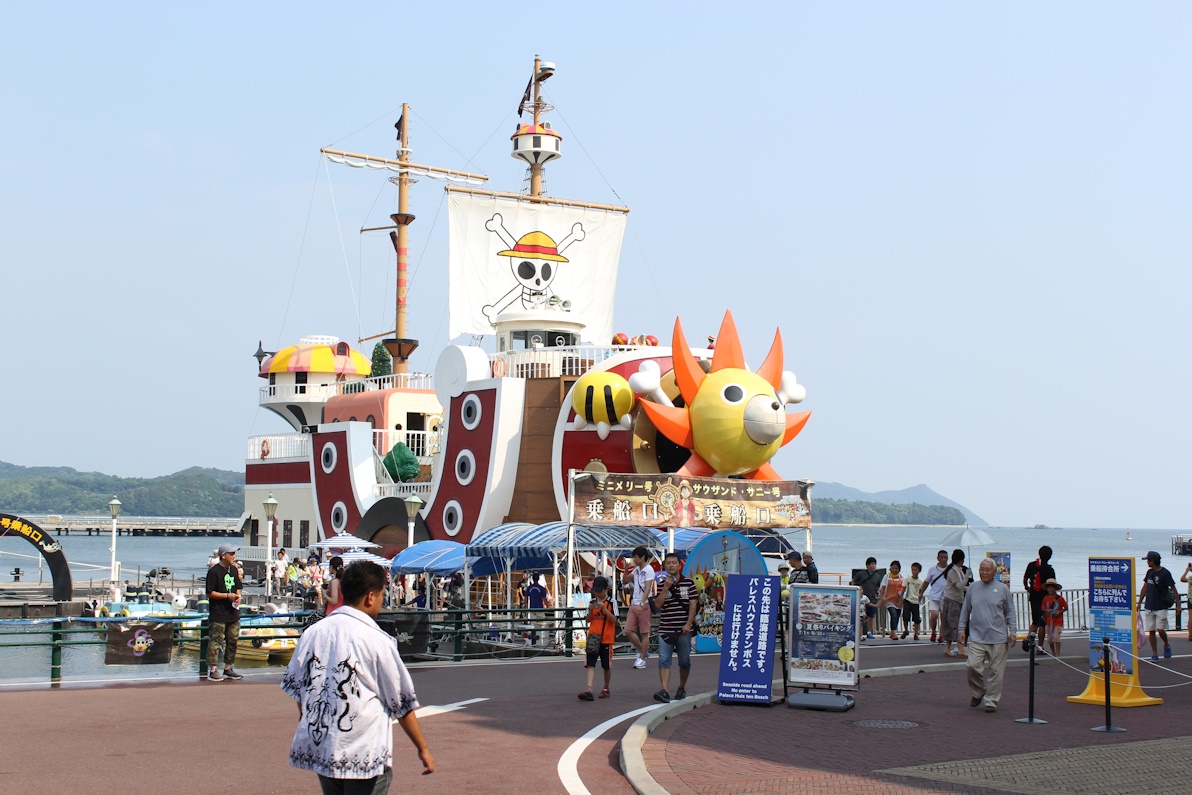 一番暑い時間帯で、園内に入ってからも移動はエアコンの効いたバスで移動して、最初に体験したのはアニメONE.PIECEでおなじみの海賊船サウザント.サニー号です。