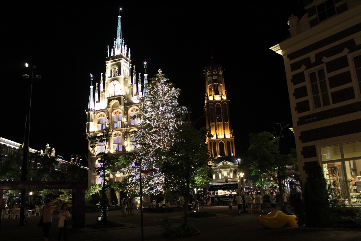 そのうち腹も減ってきたので夕食を済ませると外はもう暗くなっていて、園内はイルミネーションで飾られていました。