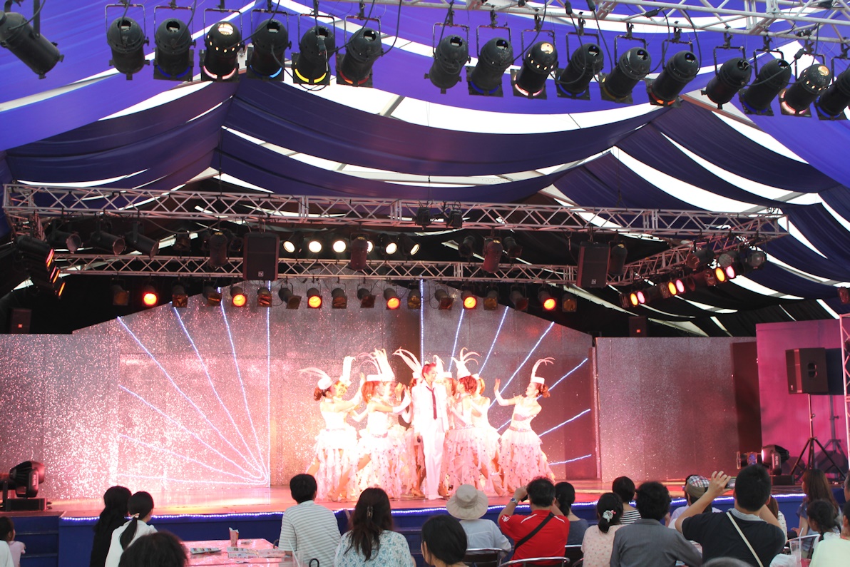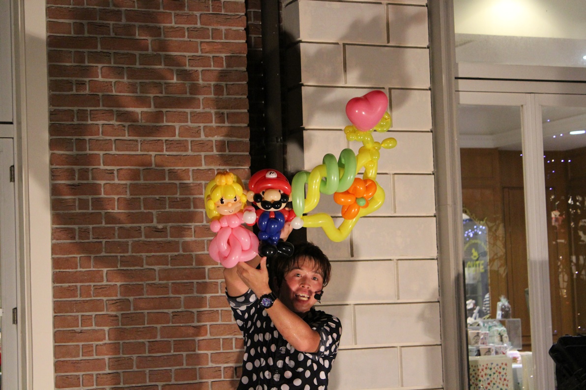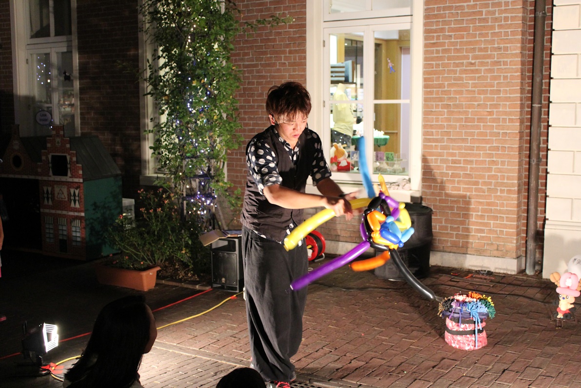夜になると風景も様変わりをし、スプレーアートや素晴らしかったのはバルーンアートでした。