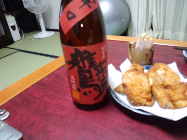 今日の晩酌は大分県豊後大野市の鷹来屋五代目をケンタッキーのフライドチキンで遣っています。