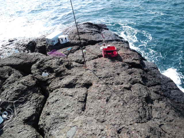 ここには底物の人と一緒に上がり私は先端側に入らせていただき、夜明けまで夜釣りをしますが釣果は無く泳がせの仕掛けを組み腹ごしらえをして戦闘開始です。