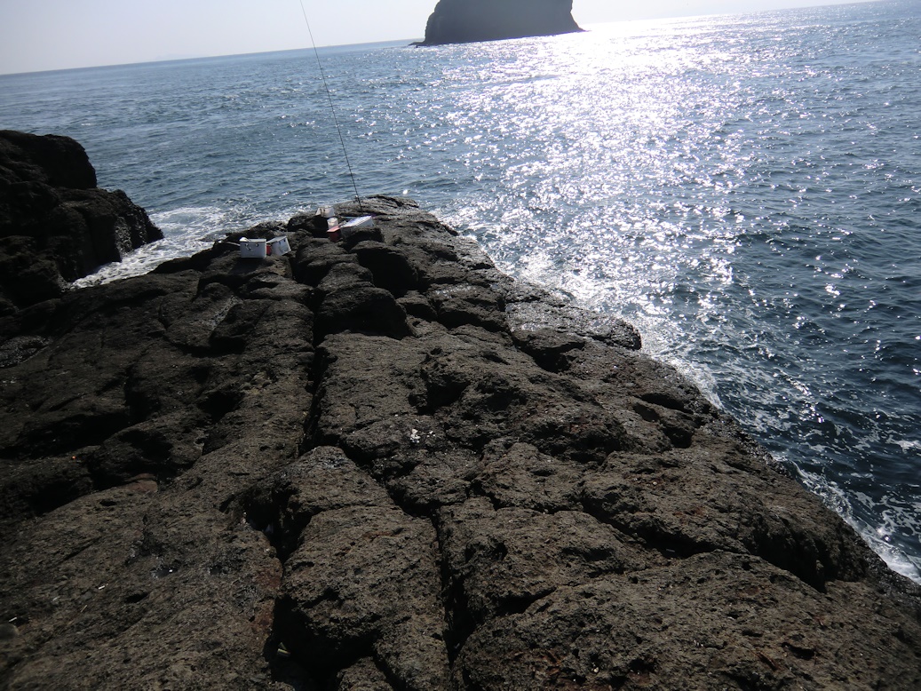 釣り始めて数投目でサラシの中でスズキを掛けますが太仕掛けに物を云わせてぶり上げたところ魚に反転されて鈎外れでバラしてしまいました。