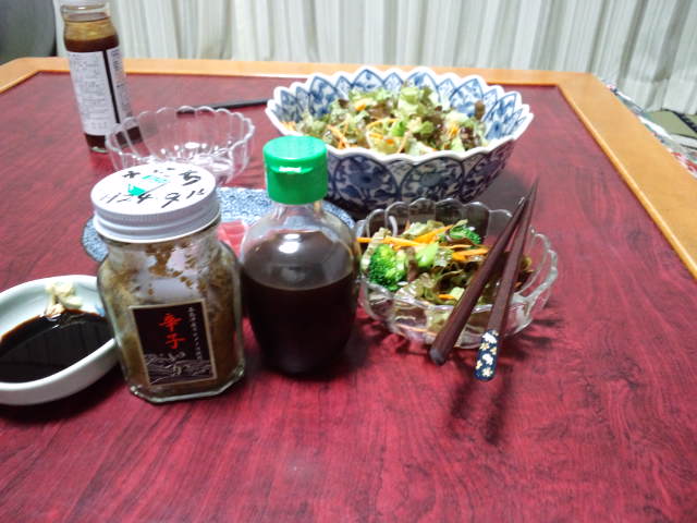 私のサラダのドレッシングは自家製のスダチのポン酢とスダチ胡椒で頂きます。