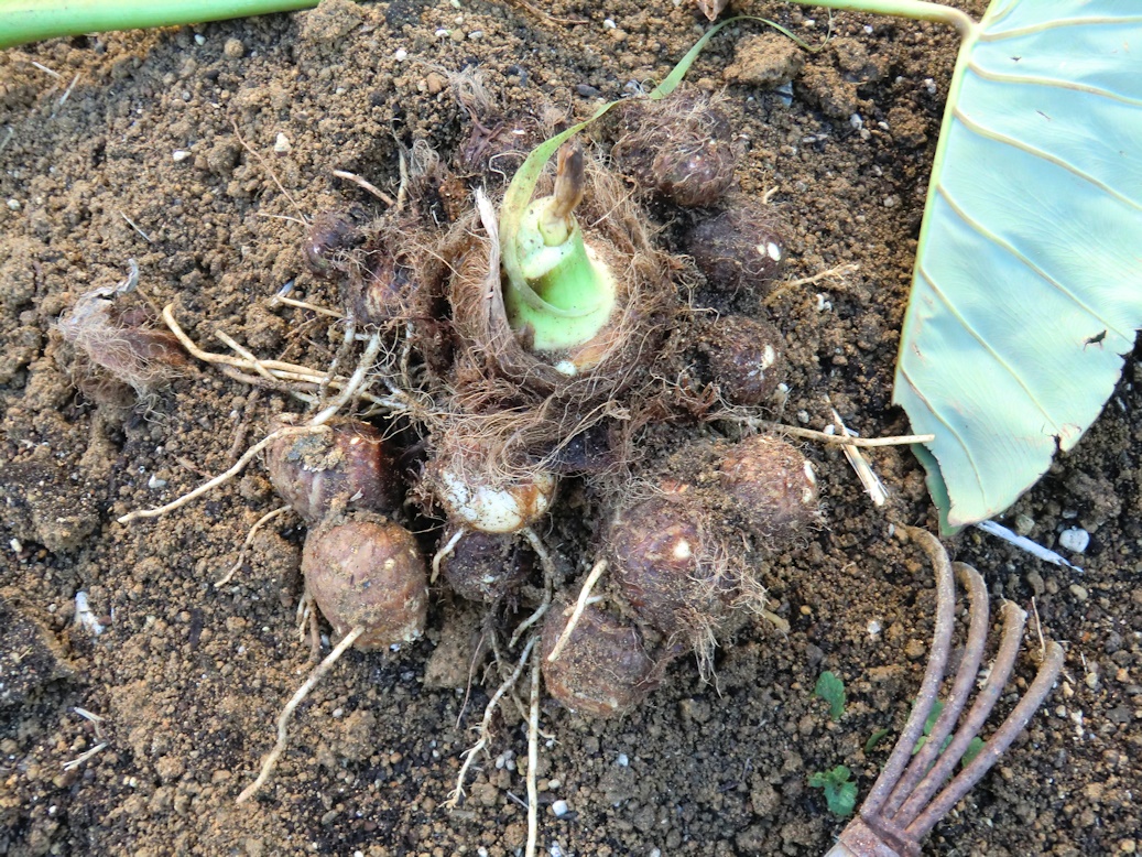 今日は里芋を一株試し掘りをしました。