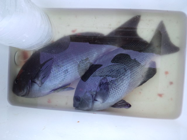 夜釣りでスマートな40センチを釣って、夜が明けて30センチを一匹釣りましたが後はさっぱりです。