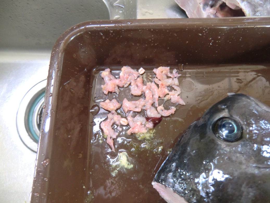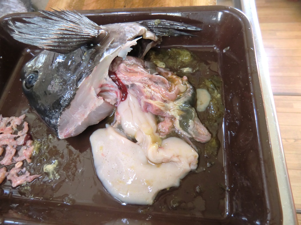 胃袋の中を見てみると沢山の沖アミと麦が少し入っていました。