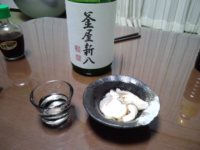 今日は酢ガキで埼玉の銘酒釜屋新八を遣っています。