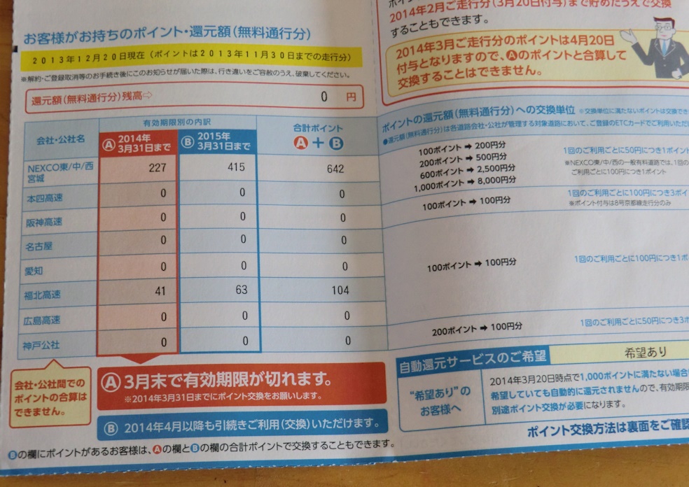 高速道路のマイレージが貯まりました。