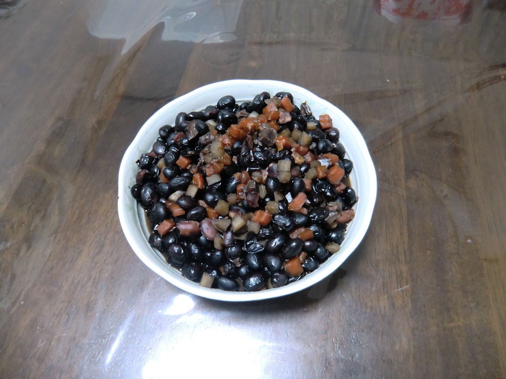 正月用に買っておいた黒豆が残っていたので煮豆にしました。