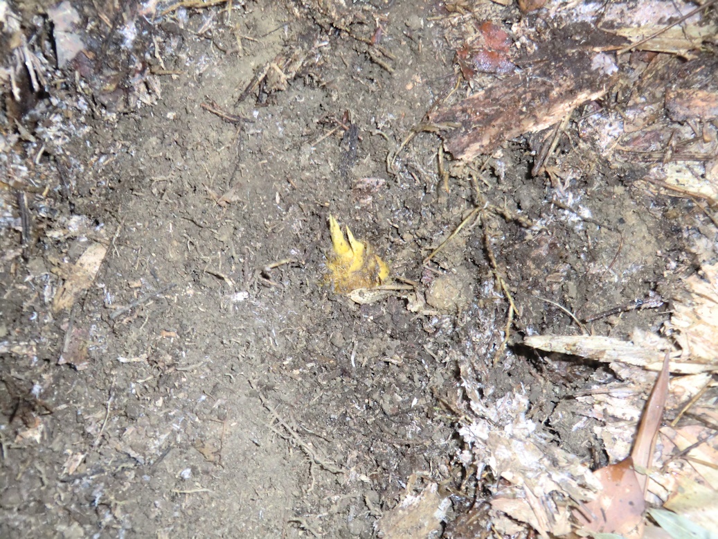 そんな中を足で探りながら進んで行くと、違和感を覚えて落ち葉をのけると