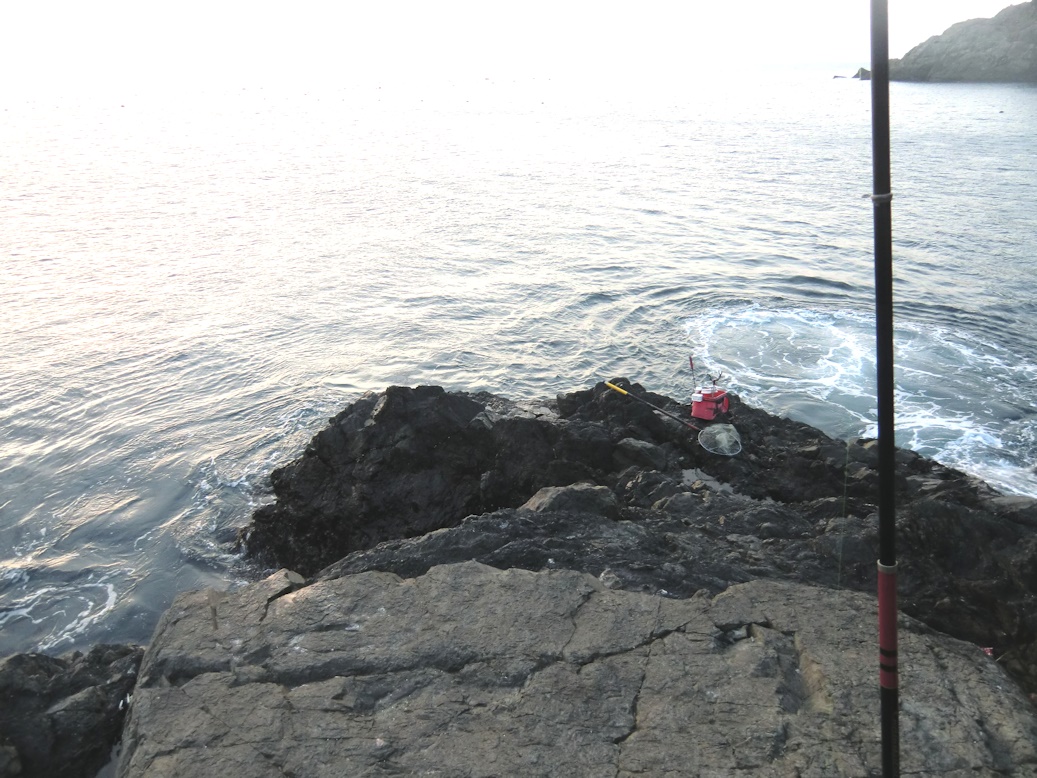 案の定移動して30分くらいすると写真の釣り座はうねりにより呑み込まれるほどになりました。