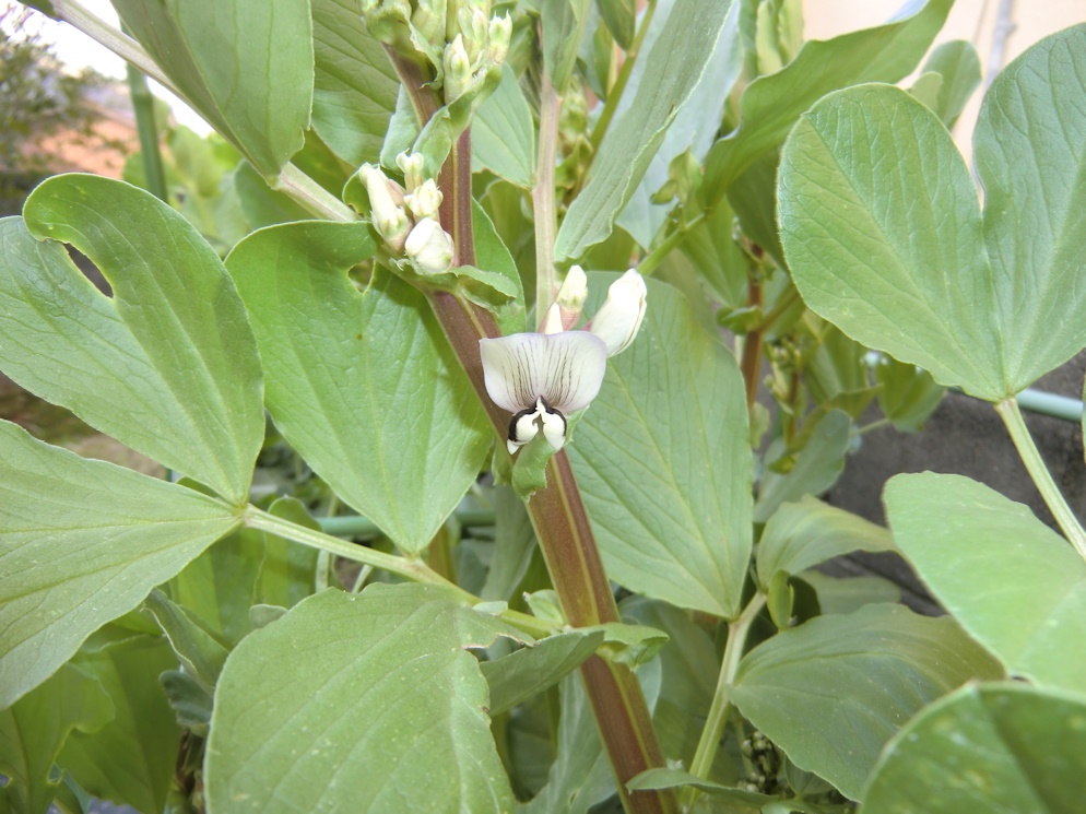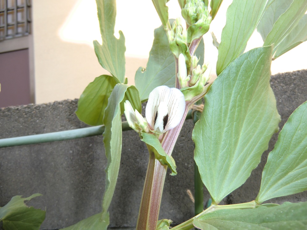 少し早い気がしますが、プランターのそら豆に花が咲き始めました。