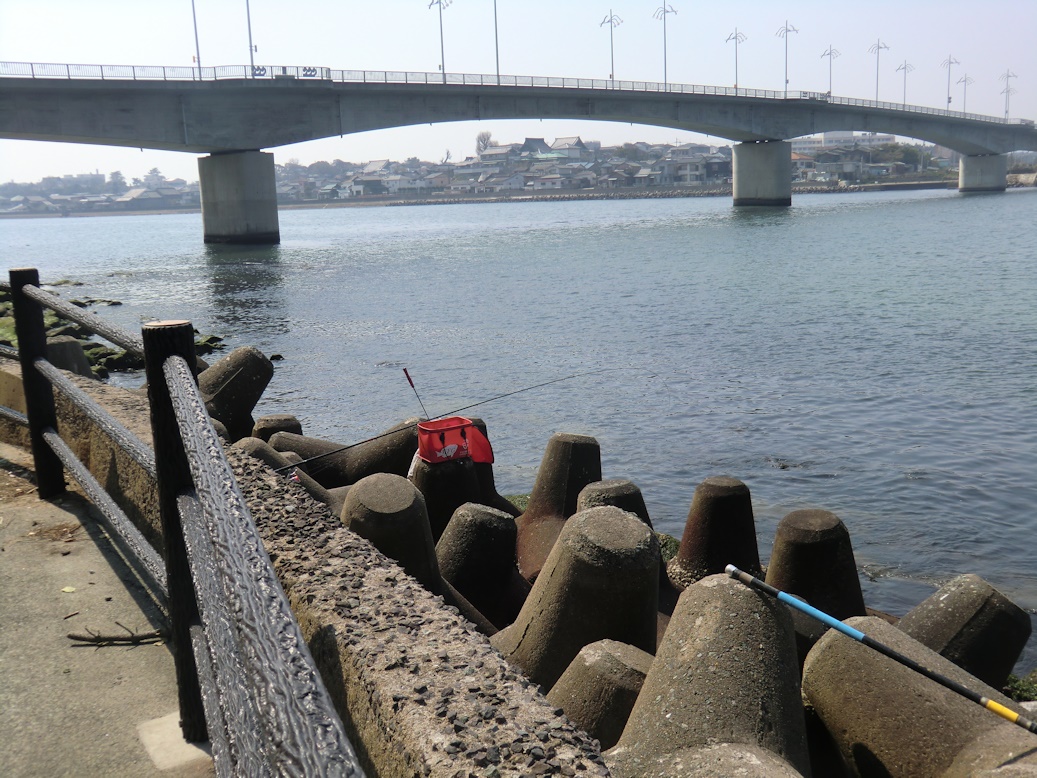 それで残っていた撒き餌を持って遠賀川の河口にチヌ狙いで行ってきました。