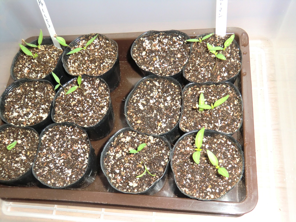 こちらは少し前に芽を出していたピーマンとシシトウです。