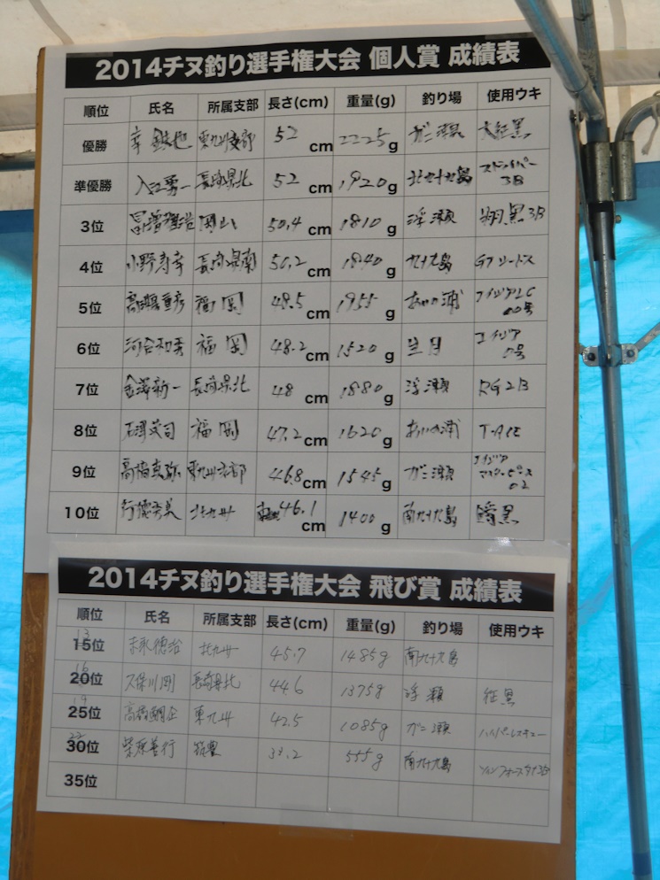 釣研FGチヌ釣り選手権結果