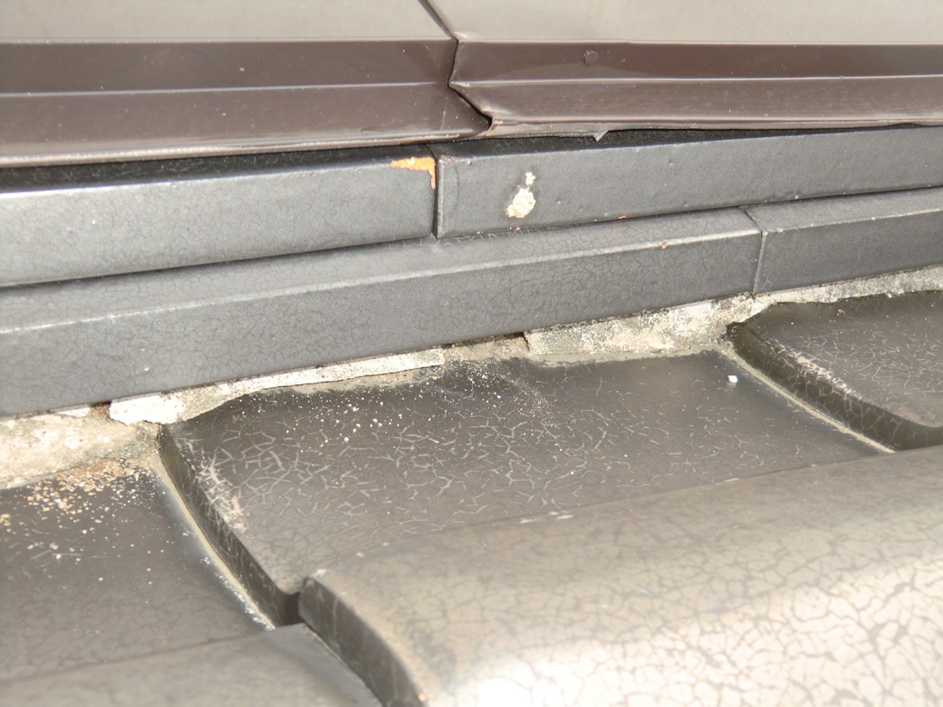 昨日の雨で新たな雨漏りが発生したので今日、屋根に上って点検してみたらボロボロでした。
