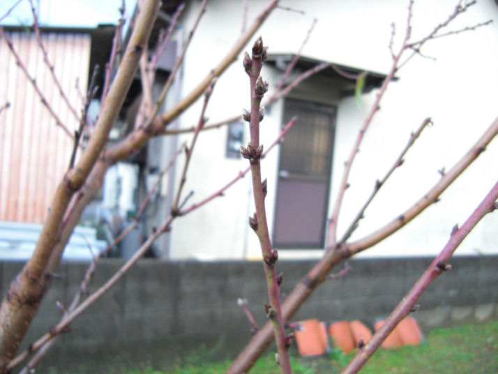庭の桃の木につぼみが付いていました、花芽も、葉芽も、たくさん付いています、来年が楽しみです。
