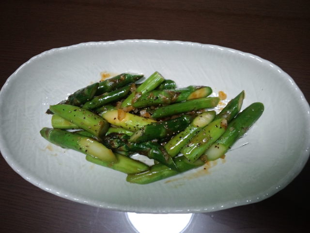 今日の一品は北海道産アスパラガスの中華風です。