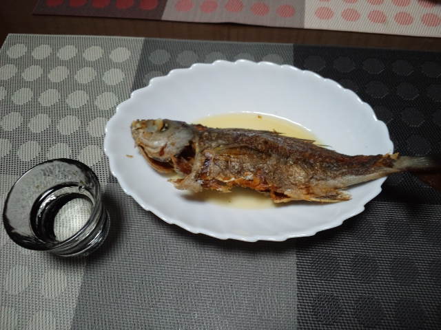 昨日のイサキの小ぶりの物を南蛮漬けにして西の関を遣っています。