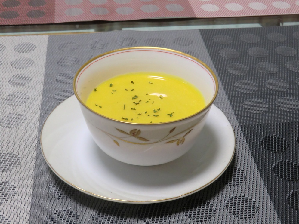 今日はカボチャの冷製スープを作りました。
