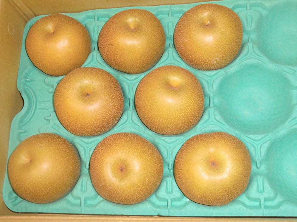 豊水の4Lが11個入って5㎏です、今年は九州地方と違って雨が少なく晴れの日が多かったのですごく甘くなっているとの事でした。