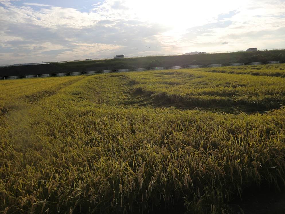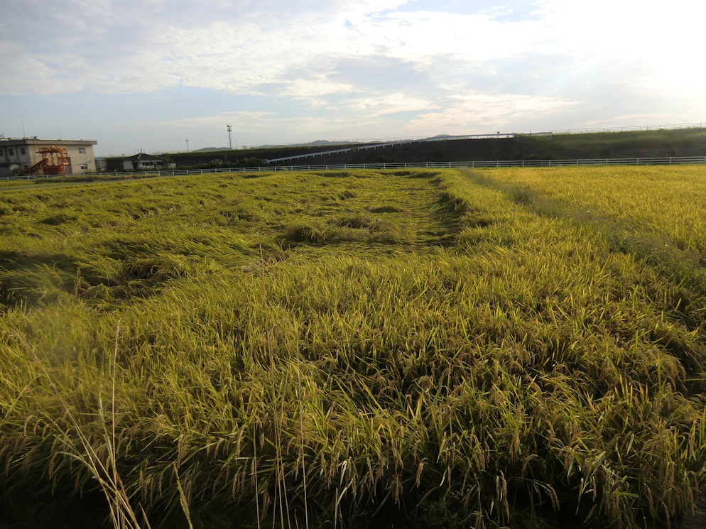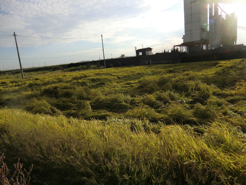 やっと刈り入れとなった矢先の事でしょうね、この田圃はほぼ全滅です。
