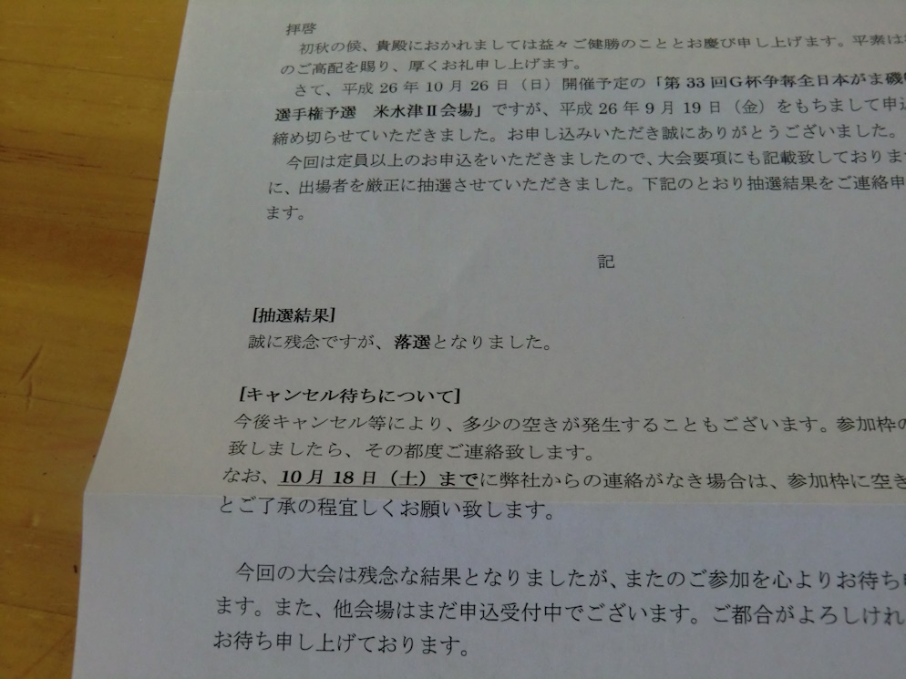 先日抽選で落選したG杯米水津Ⅱ予選会場ですが、