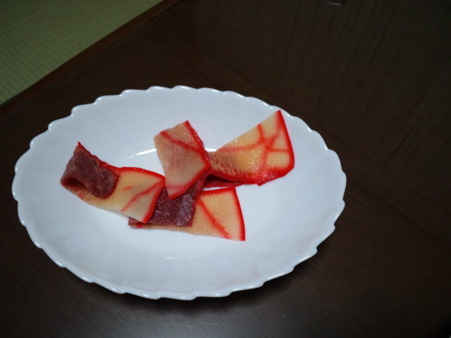 半分食べてしまいましたが今日の肴はクジラのベーコンで一杯やっています。
