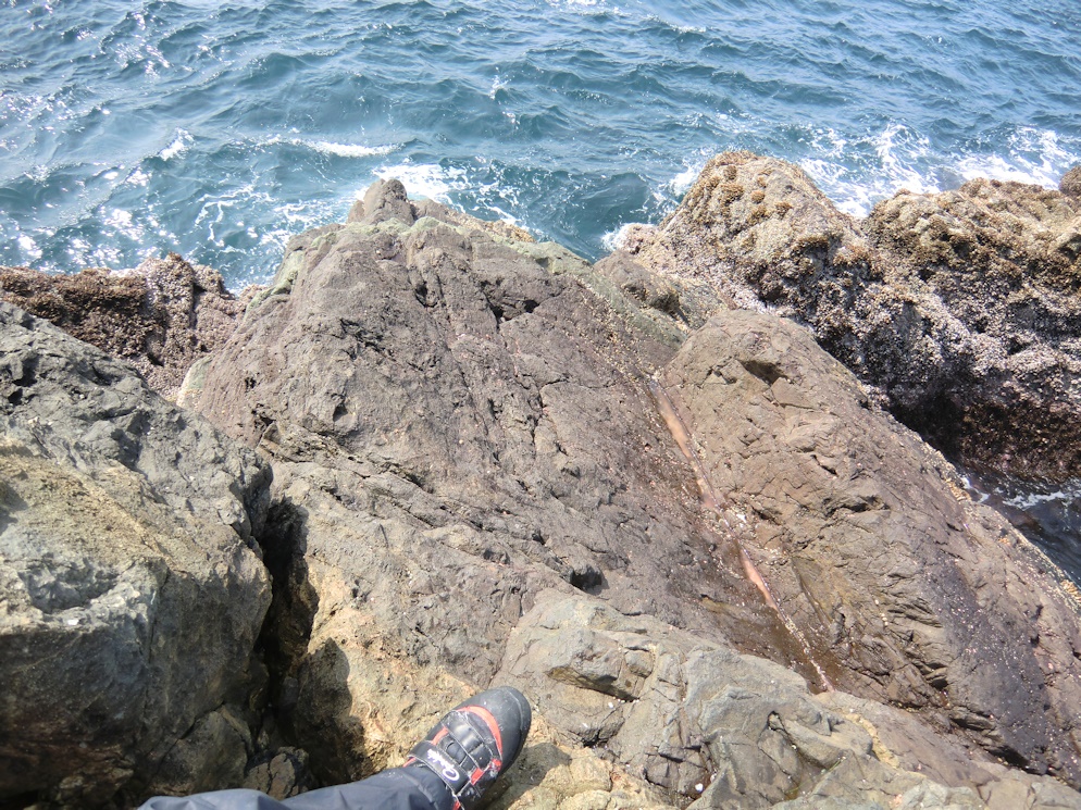 見ての通りV字型の足場になっています、船頭は前にある瀬に渡れと言っていましたが手ぶらなら何とか渡れますが、齢64の年寄りには荷物を持って渡るのは至難の業なので辛抱してこのV時の足場で釣ることにしました。