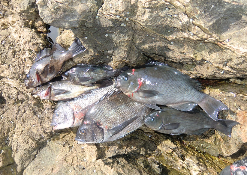 このバラシが響いたのかその後はアタリも途絶えてチヌを一匹追加して10時を過ぎると全くアタリも無くなり2時の回収までベラが数匹釣れただけで終わりでした。