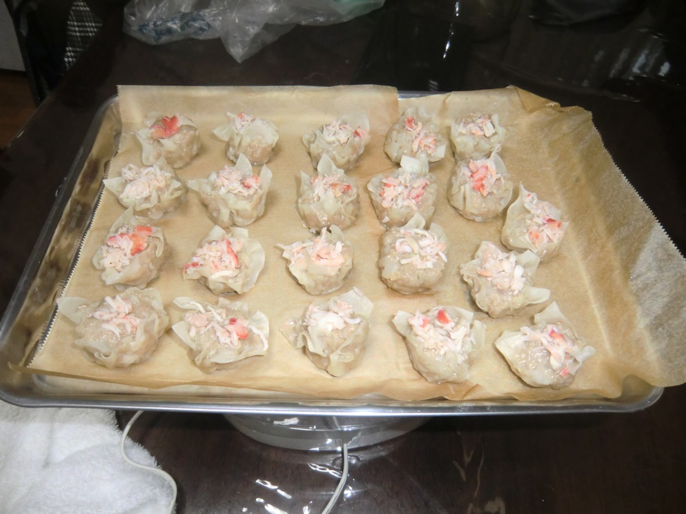 タラバの缶詰があったのでカニシュウマイにしました。