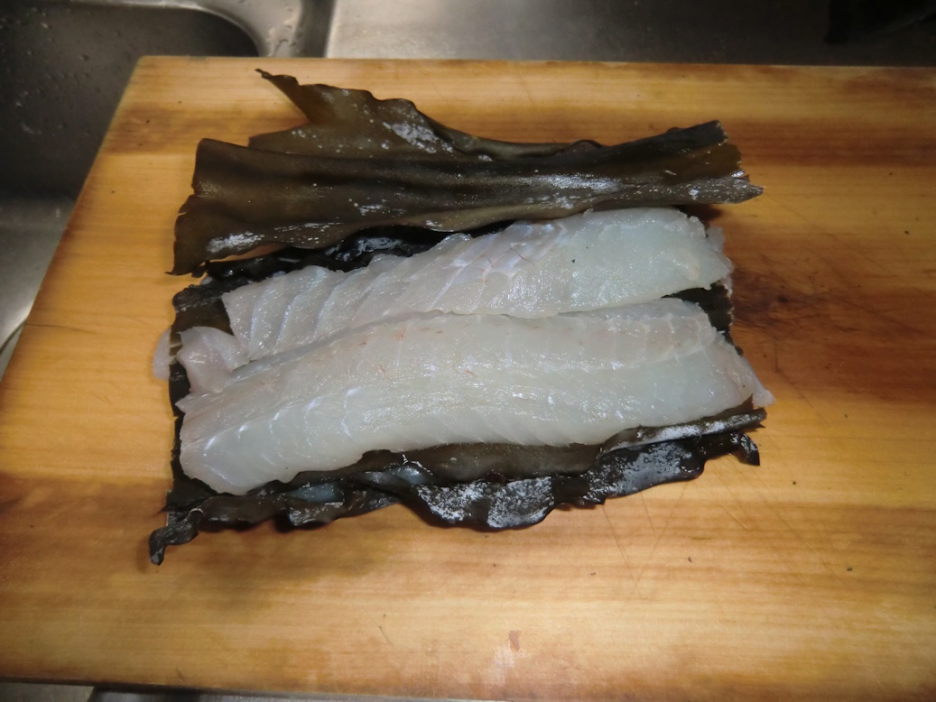 日曜日に釣ってきたクロは昨日はしゃぶしゃぶで食べて、1匹分はコブ〆にして冷蔵庫に寝かせてあります。