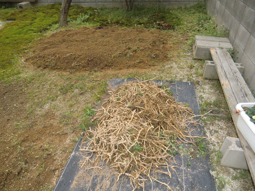 ゆっくりしようと思いましたが、ボチボチ畑の準備も始めないといけないので、裏のミョウガの畑を掘り返して根をすべて処分して他の物を植える準備をしました。