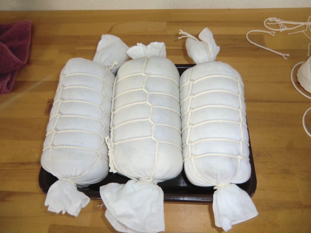 豚ロースを4㎏購入して10日ほど塩漬けをして、昨日塩抜きと今朝まで熟成をしてサラシに巻いて形を整えていよいよ燻煙です。