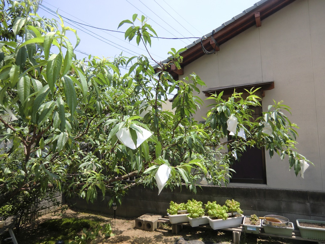 燻煙では煙の状態を見ながら桃の袋掛けもやりました。
