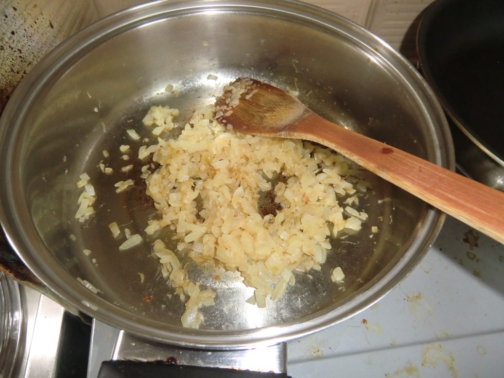 先ずは玉ねぎのみじん切りをバターで炒めて、