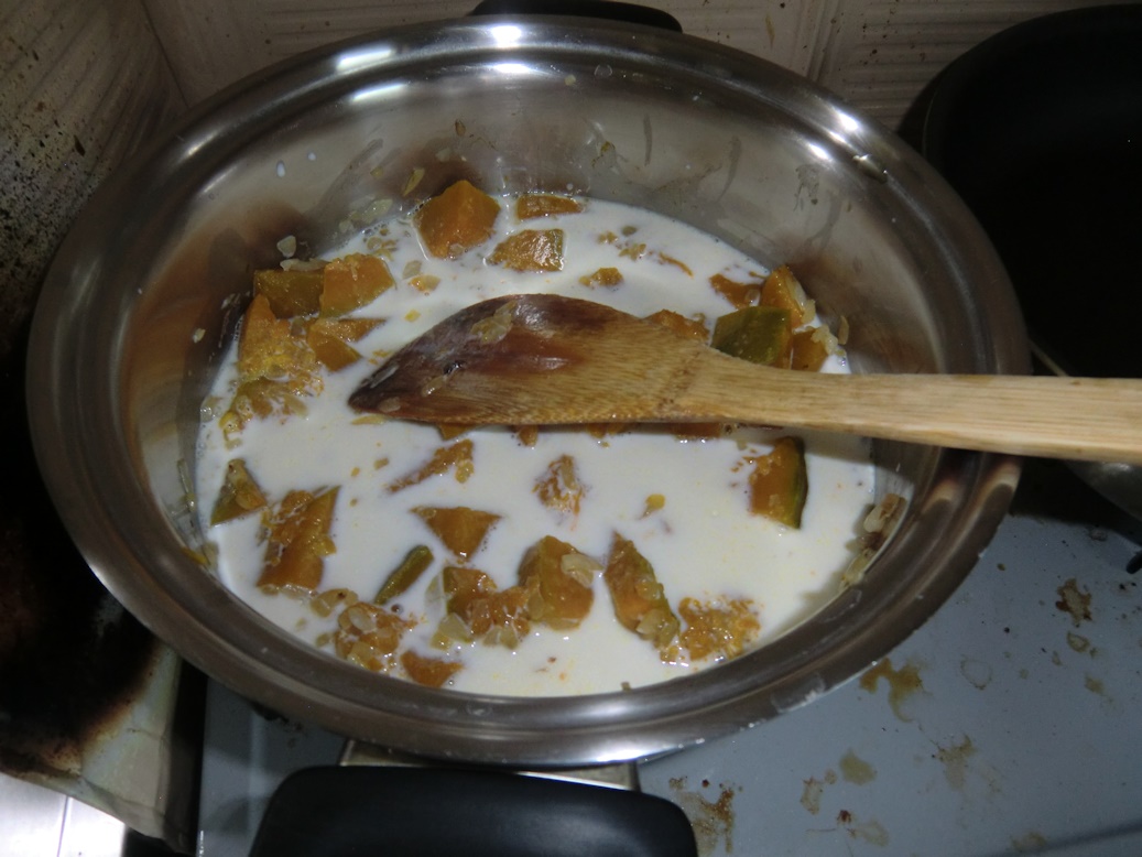 牛乳を入れて煮込んで