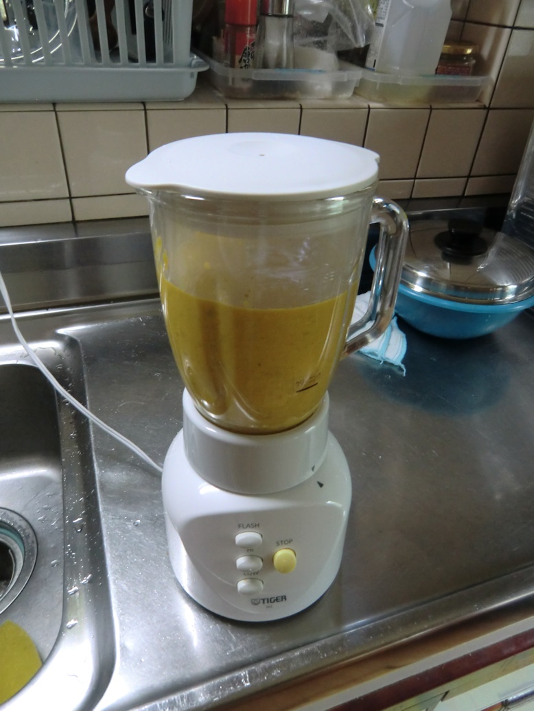 カボチャが柔らかくなったらミキサーにかけます