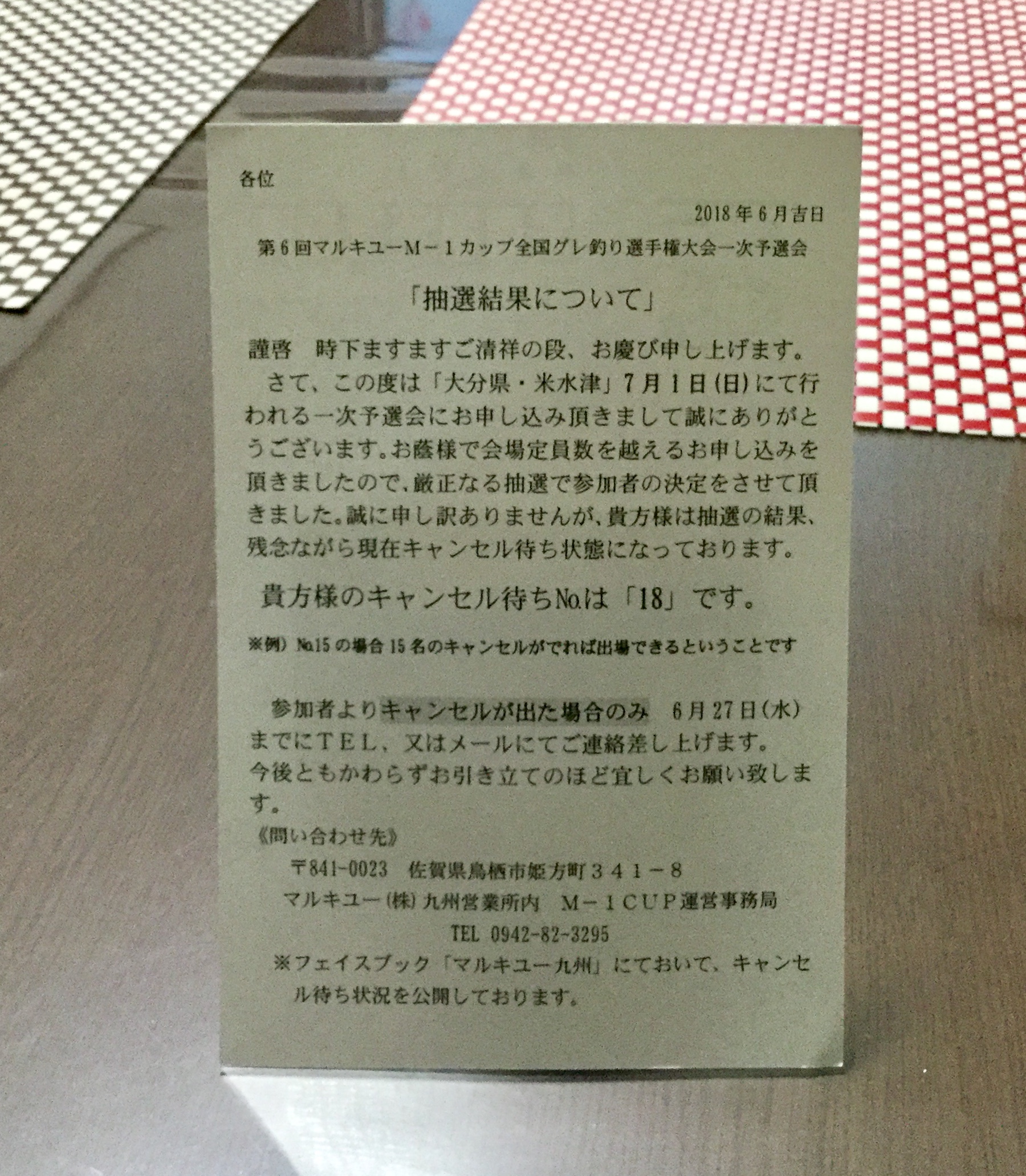 キャンセル待ちNo.は18です。