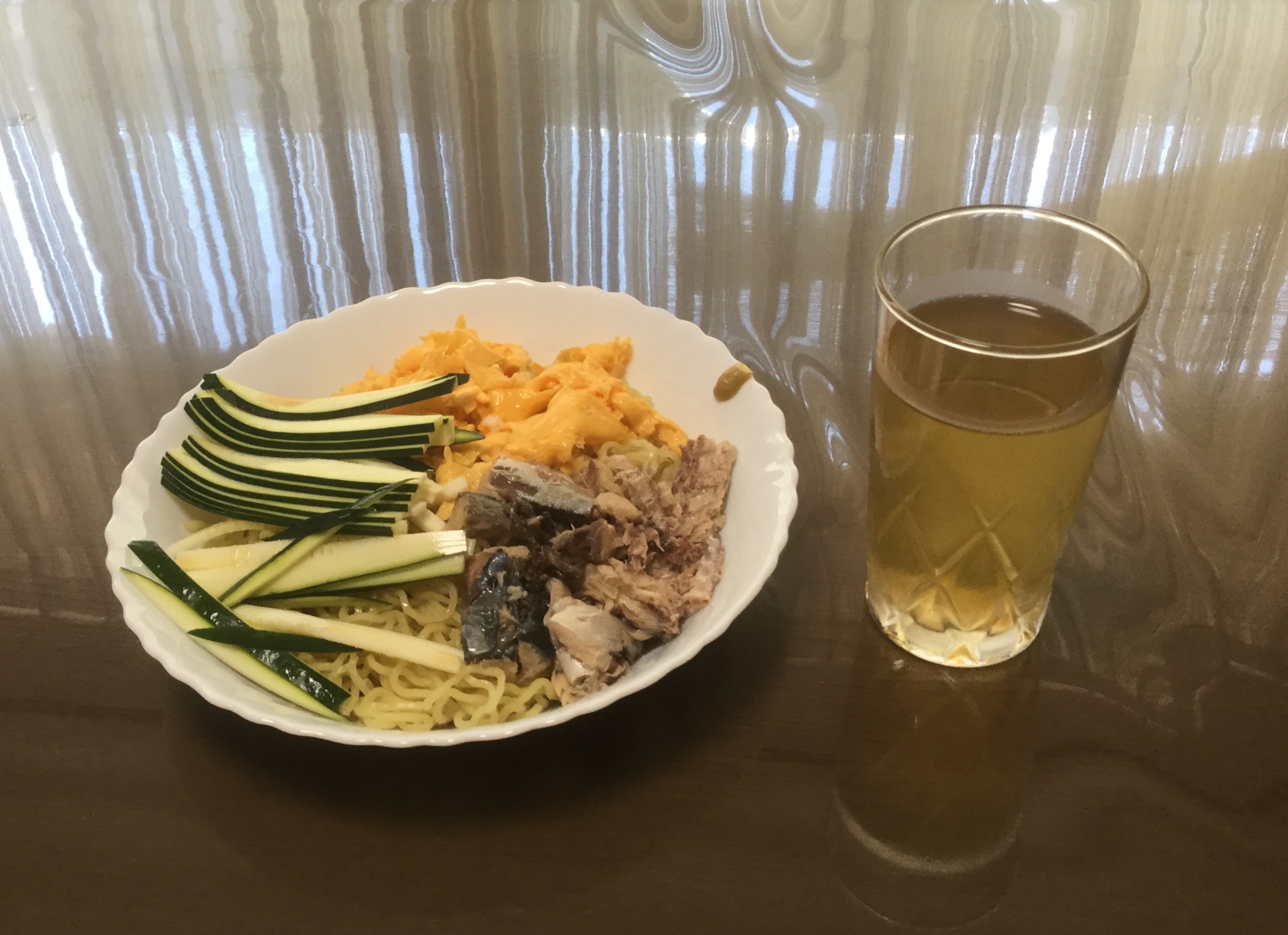 冷蔵庫の中の物で冷麺です。