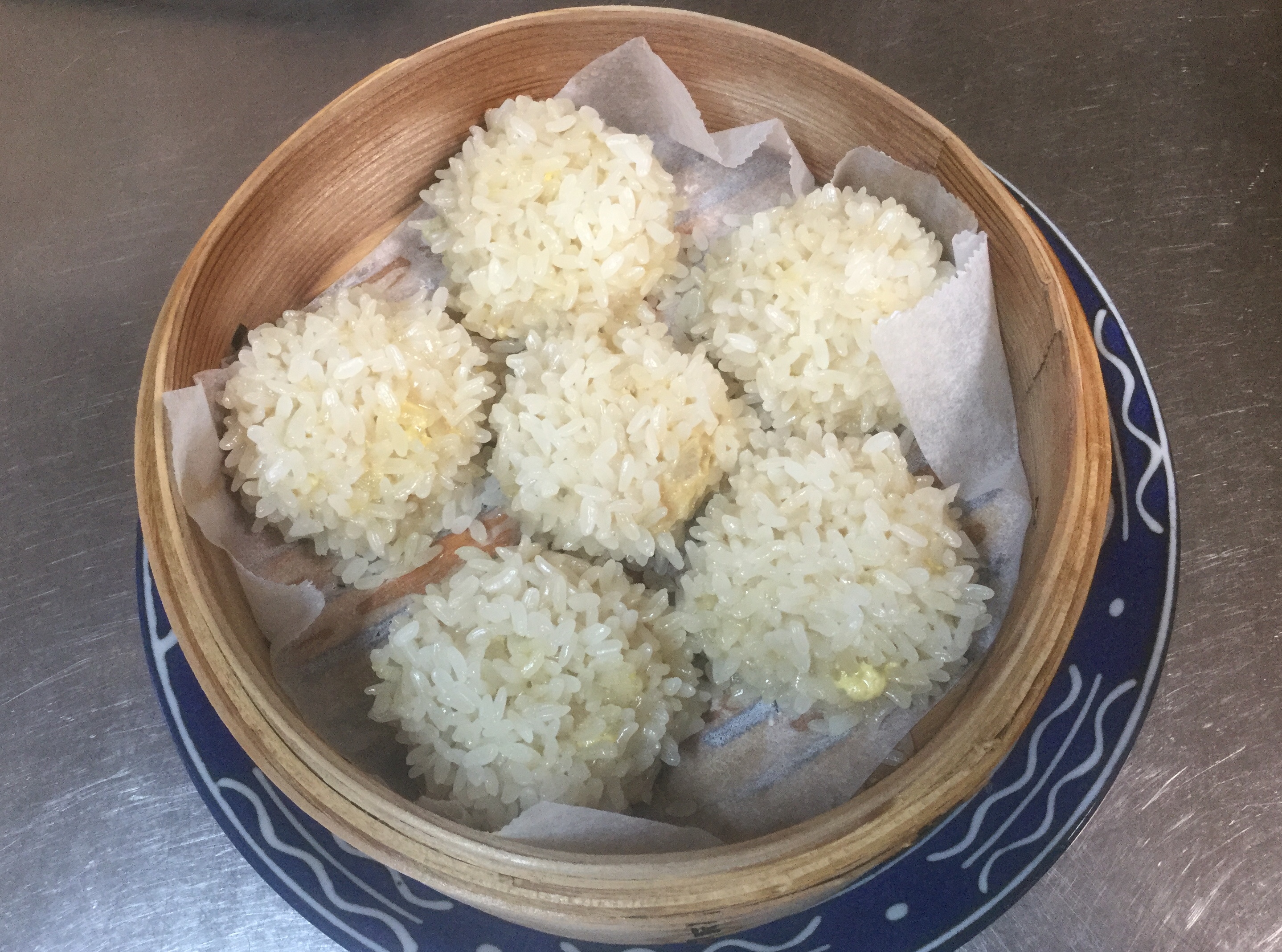 鶏ミンチのダンゴをもち米で包んだシュウマイです。