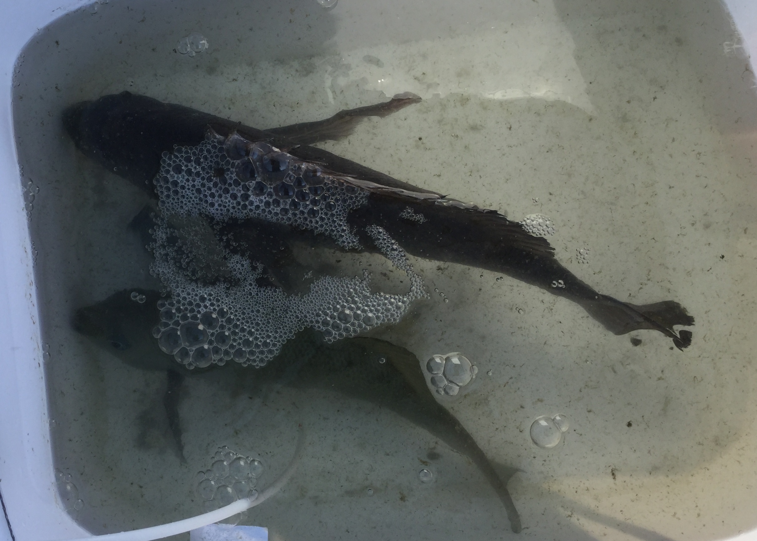 朝4時出航で横島の三角に上がり、暗いうちにチヌと35センチくらいのクロを釣りました。