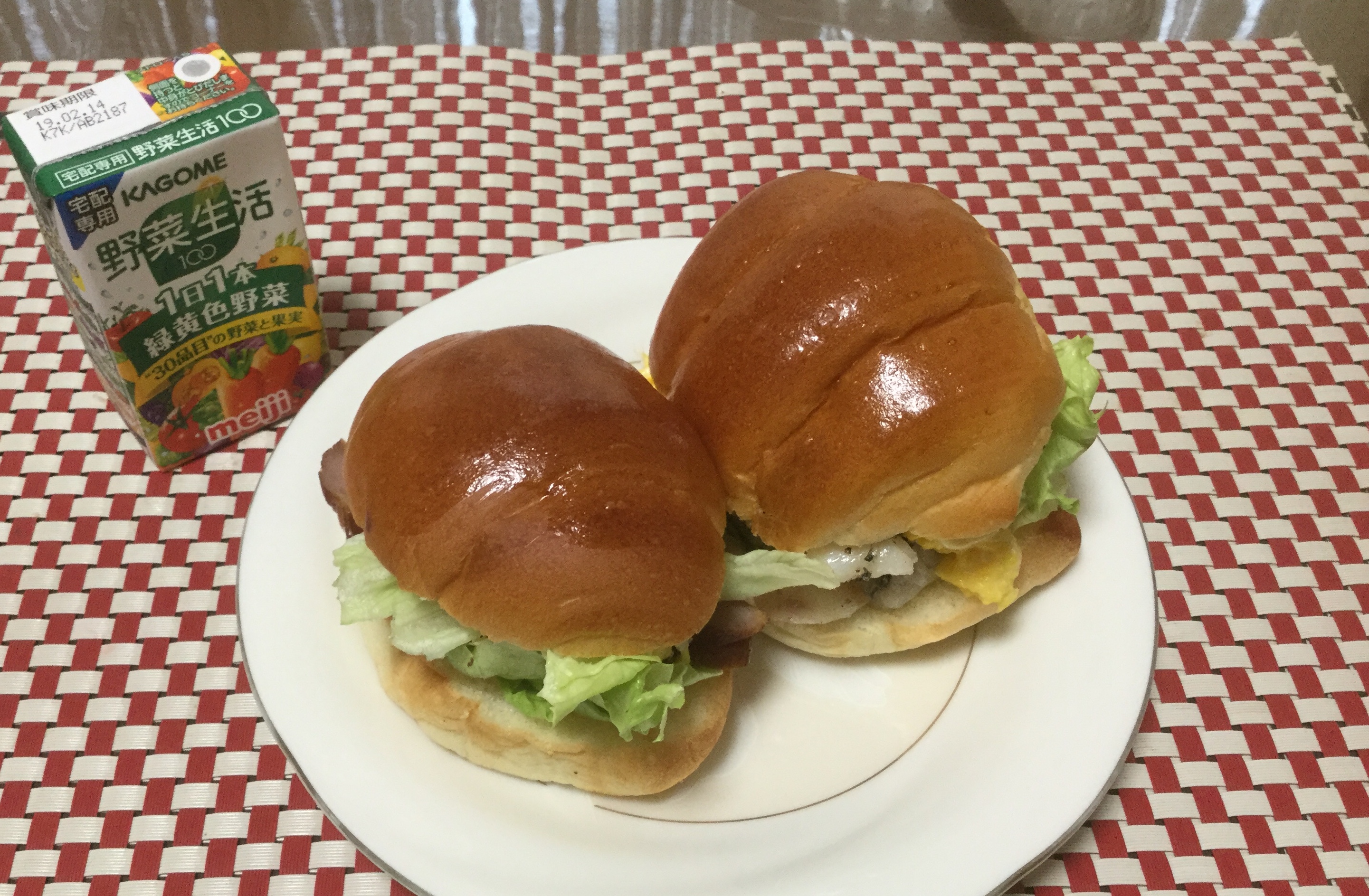 昨夜のクロのしゃぶしゃぶの残りと、スモークチキンでハンバーガー?が、今日の昼飯です。