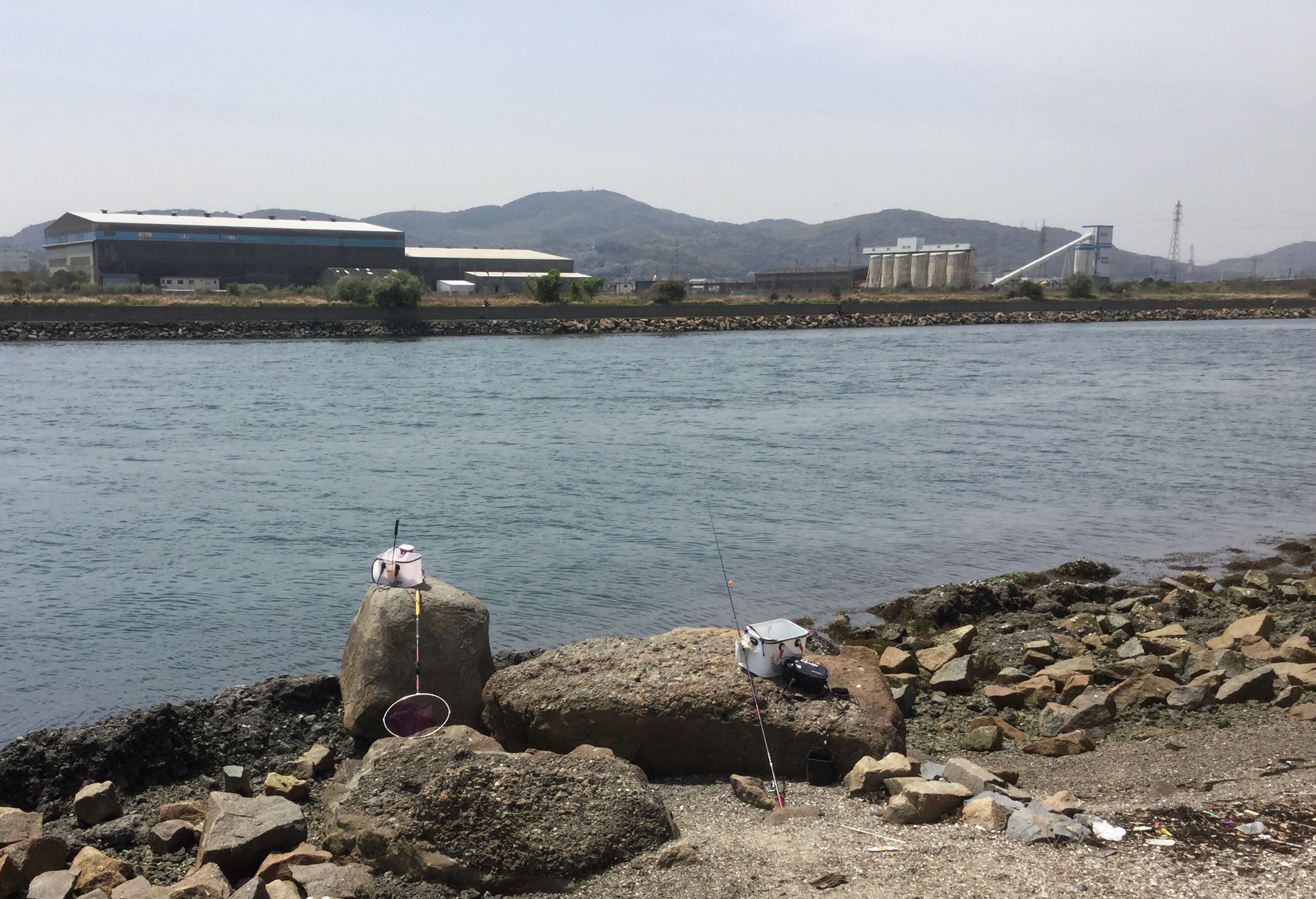 まだ潮が速いです、あと1時間くらいで干潮になるので釣りやすくなるでしょう。