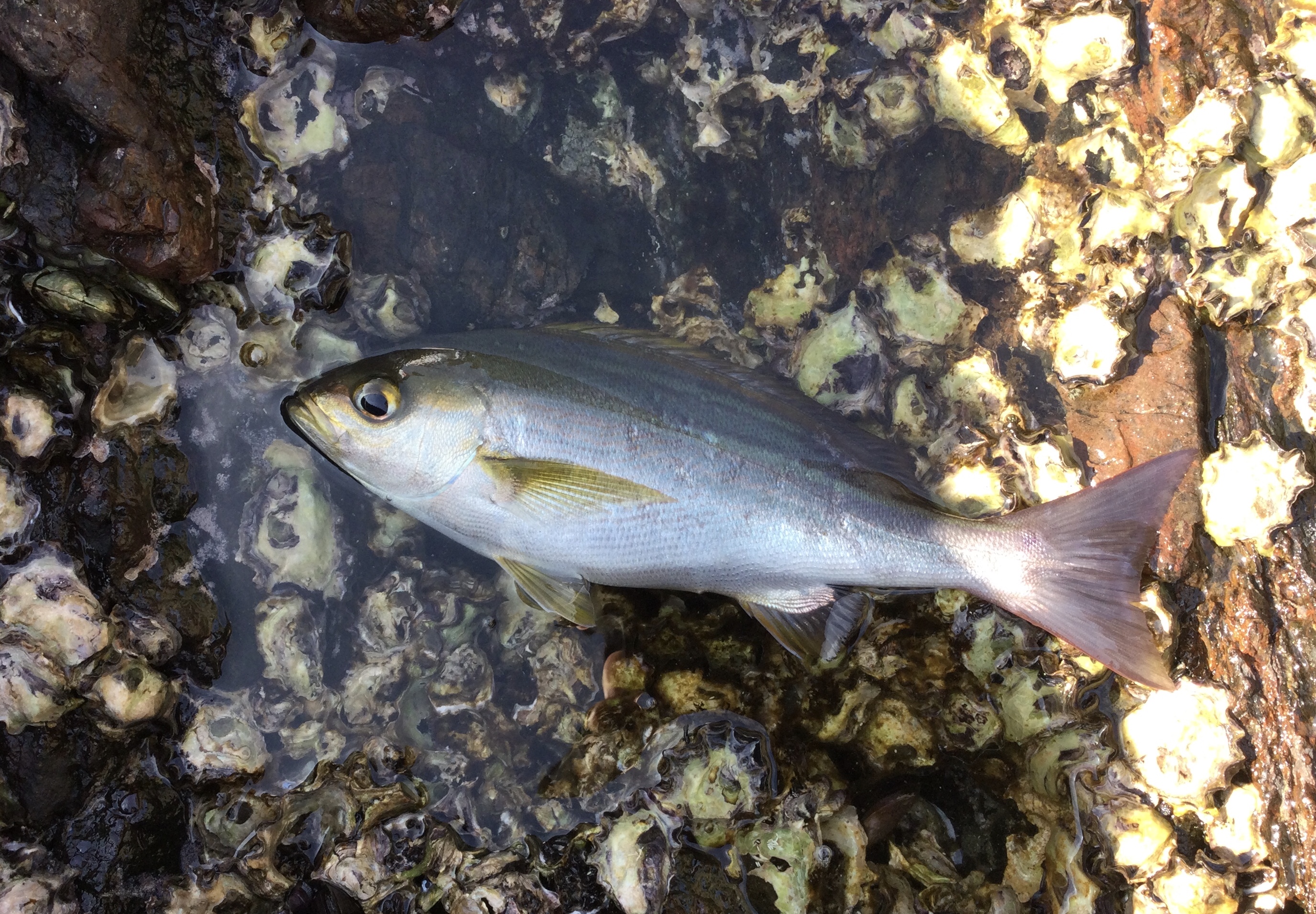 強風に耐えながら竿を振りますが、たま~に食ってくるのは30cm足らずのイサキで